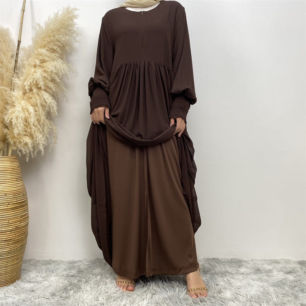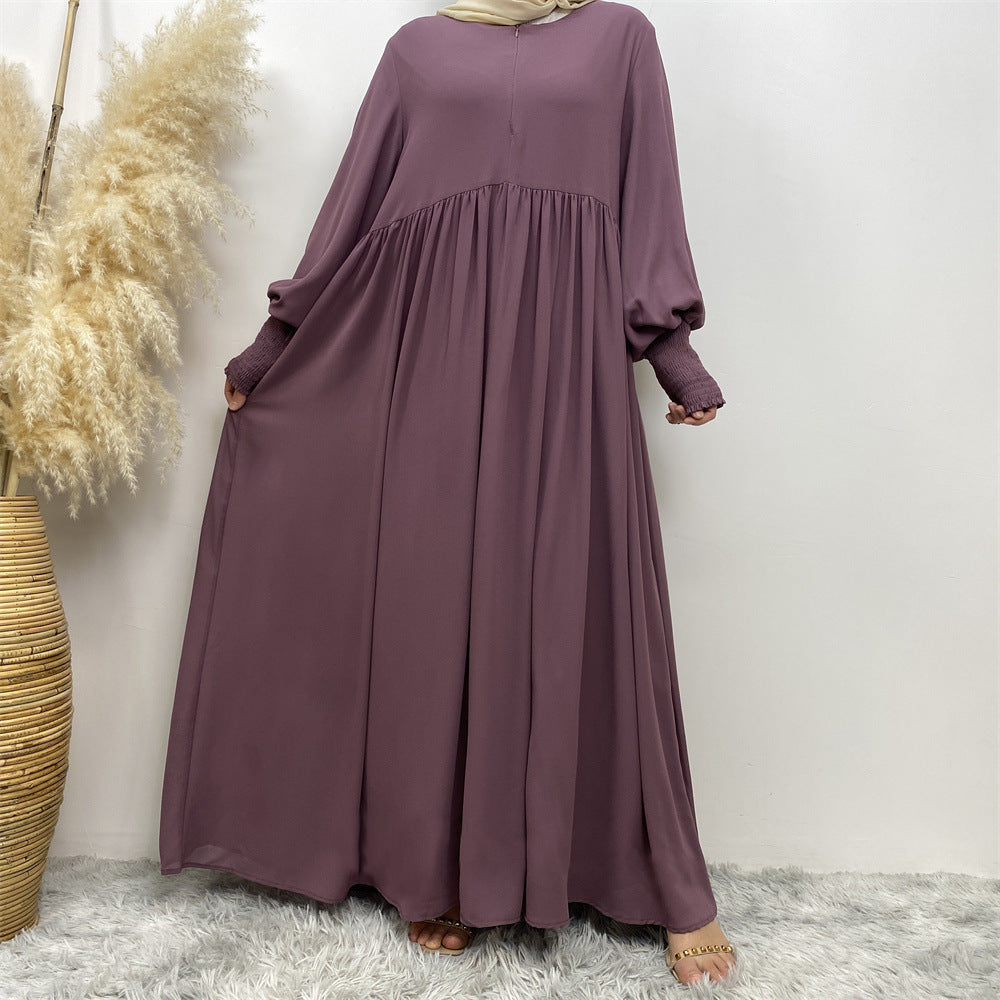 Muslim Simple Solid Color Pleated Elastic Chiffon Dress